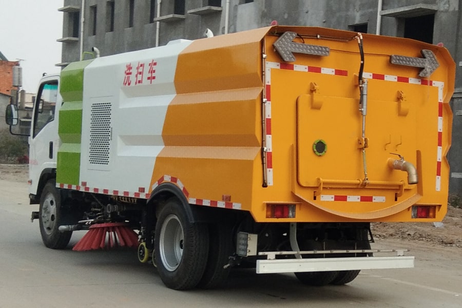11、五十鈴5噸多功能洗掃車(chē)的垃圾箱內(nèi)帶有自潔功能,在垃圾傾倒完成后可將箱內(nèi)的殘留垃圾沖洗干凈,減輕環(huán)衛(wèi)工人的負(fù)擔(dān)。